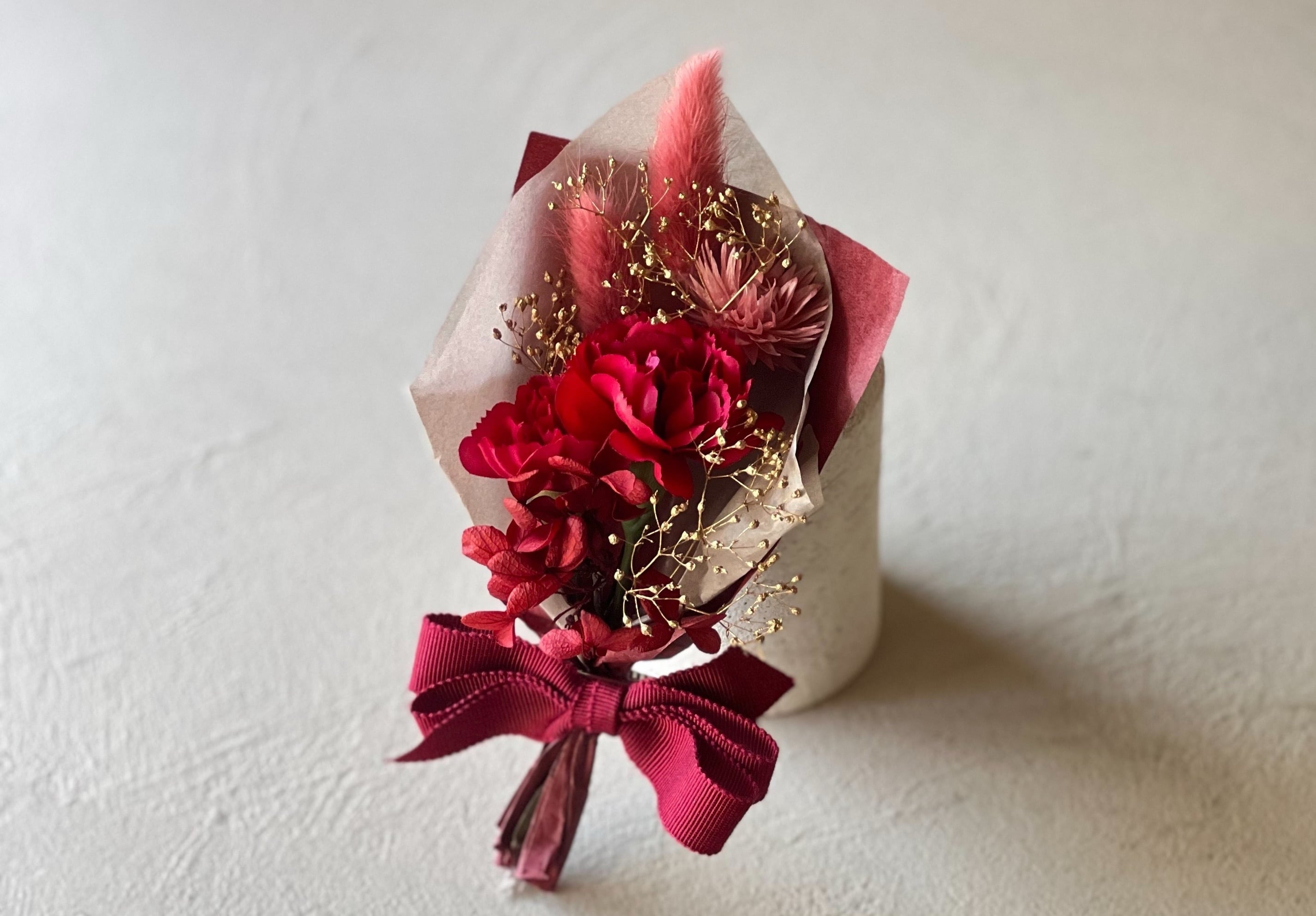 ・ハンドメイドのドライフラワーブーケはクリアケースに入っているので
