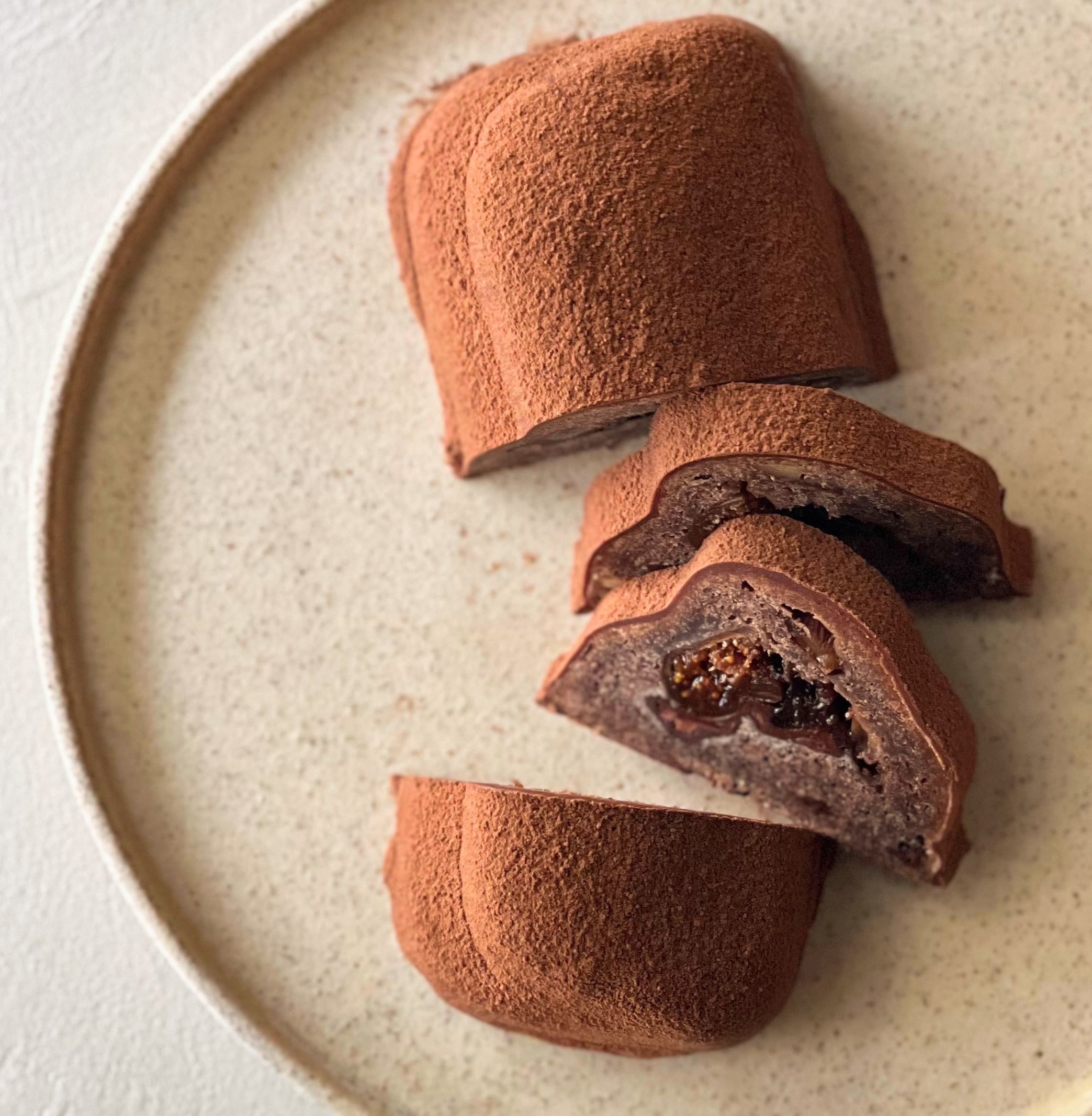 スパイス香る生地にラムレザンとアーモンドを混ぜ込み、マダガスカル産ショコラと自家製の赤ワイン煮イチジクとプルーンを包み込み焼き上げリッチで大人なシュトーレン。
