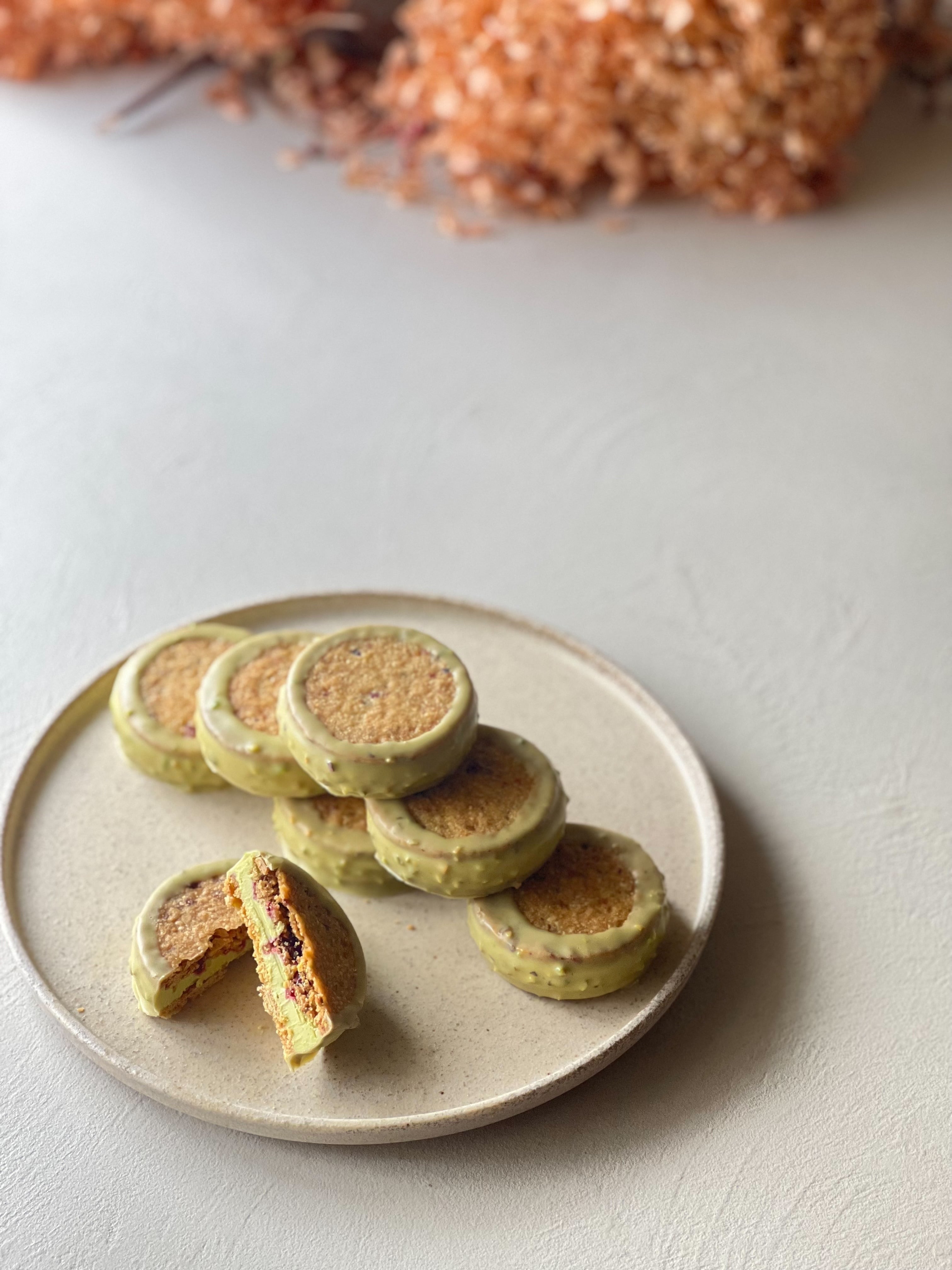 ピスタチオとクランベリーのサブレでサンド