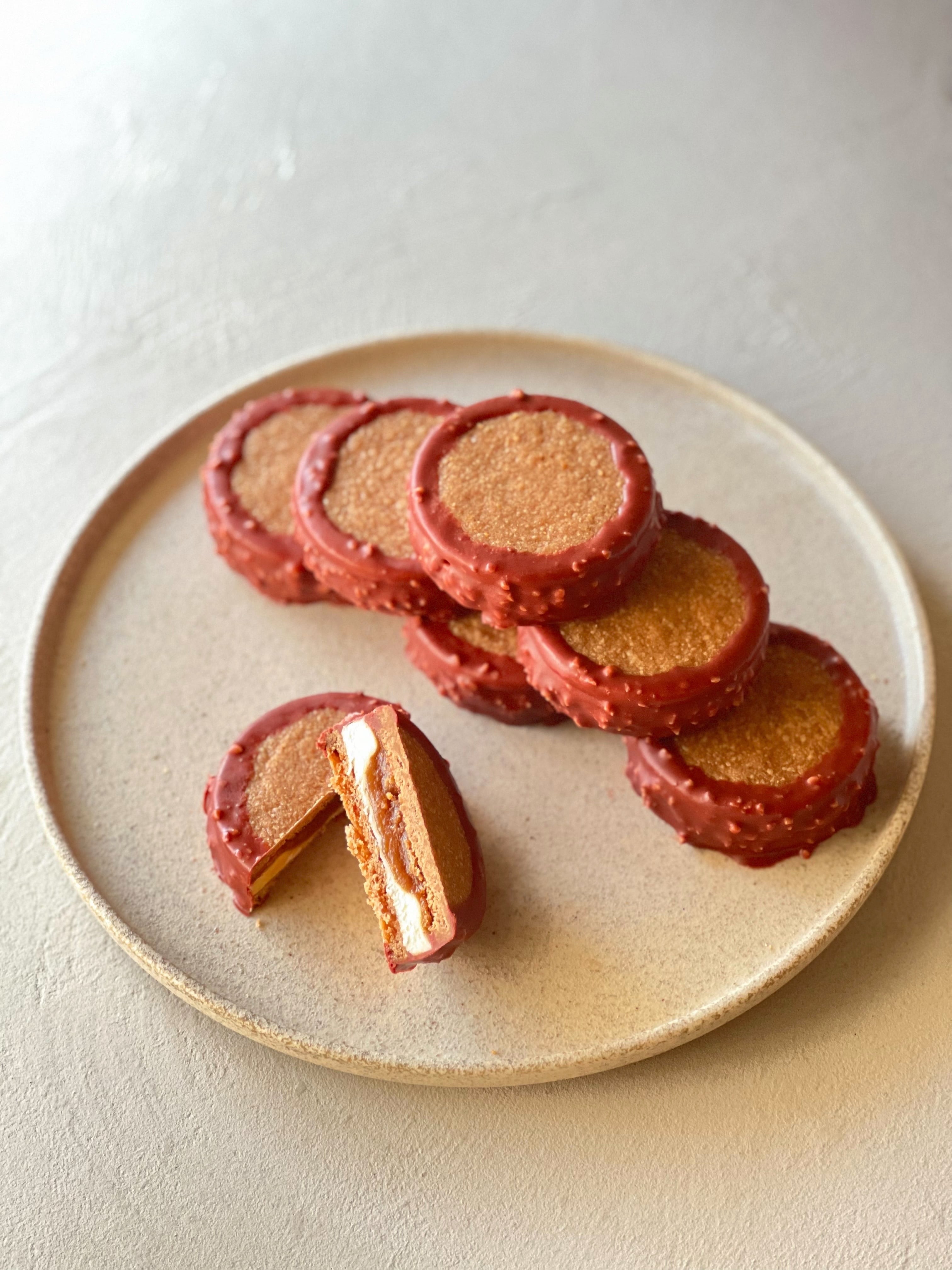 塩キャラメルソースを忍ばて、カカオサブレでサンド